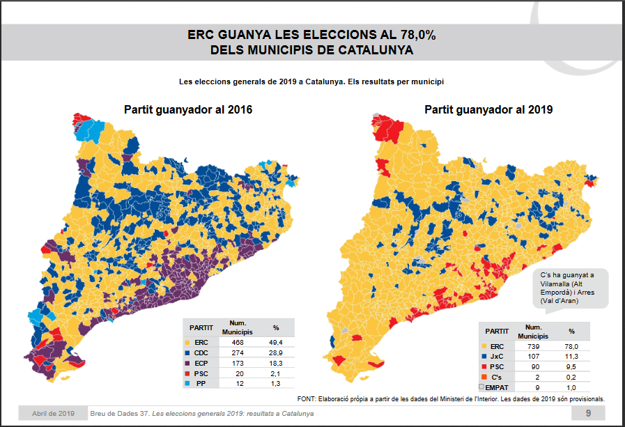 See also statistics / Vegeu també estadística: https://miquelstrubell.blogspot.com/2019/04/resultats-eleccions-catalunya.html